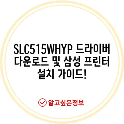 SLC515WHYP 드라이버 다운로드 삼성 프린터 설치 방법을 자세히 설명하며, 단계별 안내 및 도움을 제공합니다.