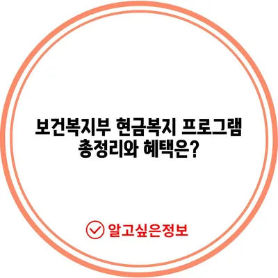 보건복지부 현금복지 프로그램 총정리와 혜택은?
