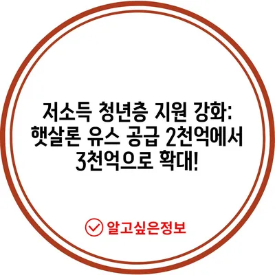 저소득 청년층 지원을 위한 햇살론유스 공급이 2000억원에서 3000억원으로 확대됩니다. 청년 사업자와 사회적 배려대상자에 대한 지원 내용도 확인해보세요.