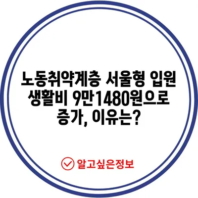 노동취약계층 서울형 입원 생활비 9만1480원으로 증가, 이유는?