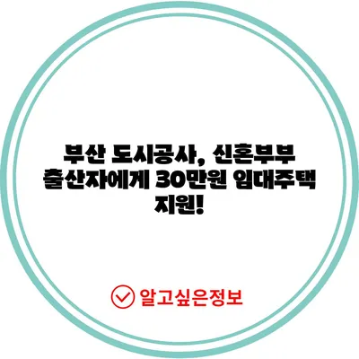 부산도시공사 임대주택 거주 신혼부부 출산자 30만원 지원