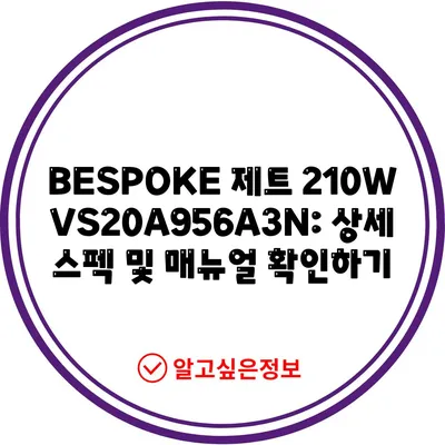 BESPOKE 제트 210W VS20A956A3N: 상세 스펙 및 매뉴얼 확인하기