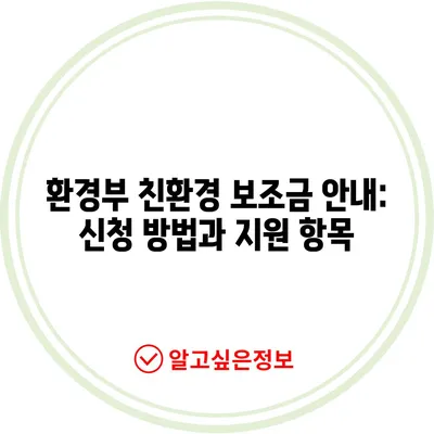 환경부 친환경 보조금 안내: 신청 방법과 지원 항목