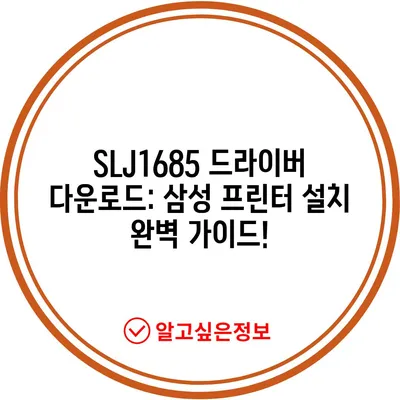 💡 SLJ1685 드라이버를 쉽게 다운로드하는 방법을 알아보세요. 💡