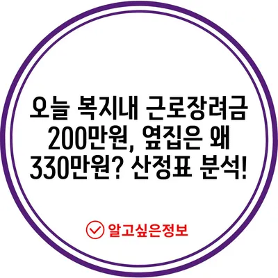 오늘복지내 근로장려금 200만원 왜 옆집은 330만원 근로장려금 산정표 안내