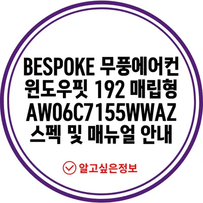 BESPOKE 무풍에어컨 윈도우핏 192 매립형 AW06C7155WWAZ 스펙 및 매뉴얼 안내