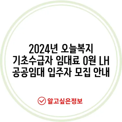 2024년 오늘복지 기초수급자 임대료 0원 LH 공공임대 입주자 모집 안내