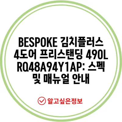 BESPOKE 김치플러스 4도어 프리스탠딩 490L RQ48A94Y1AP: 스펙 및 매뉴얼 안내