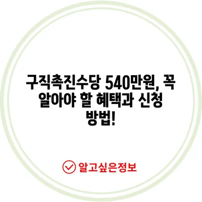 구직촉진수당 540만원, 꼭 알아야 할 혜택과 신청 방법!