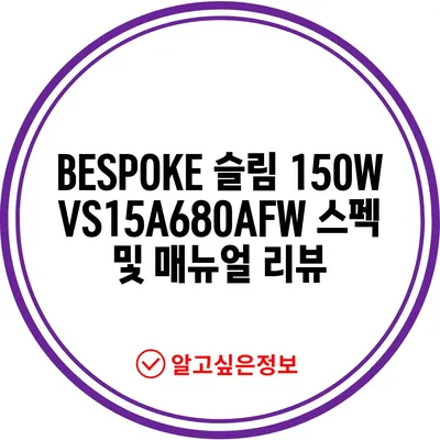 BESPOKE 슬림 150W VS15A680AFW 스펙 및 매뉴얼 리뷰
