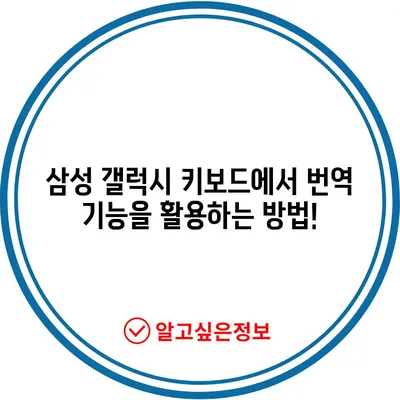 이러한 질문과 답변을 통해 삼성 갤럭시 키보드 번역 기능에 대한 궁금증을 해결하고, 유용한 정보를 제공할 수 있기를 바랍니다.
