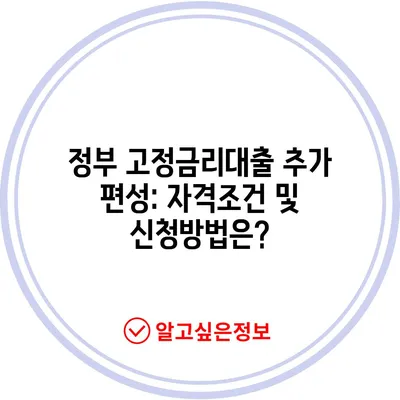 정부 고정금리대출 추가 편성: 자격조건 및 신청방법은?