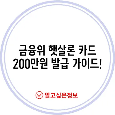 금융위 햇살론카드 200만원 발급 안내를 통해 저신용자도 쉽게 카드를 발급받는 방법과 조건을 자세히 알아보세요!