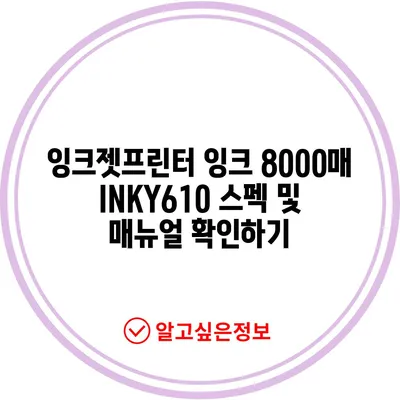 잉크젯프린터 잉크 8000매 INKY610의 상세 정보와 스펙 매뉴얼을 소개합니다. 구매 시 도움이 될 수 있는 유용한 정보도 포함되어 있습니다.