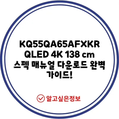 KQ55QA65AFXKR QLED 4K 138 cm 스펙 매뉴얼 다운로드 완벽 가이드!