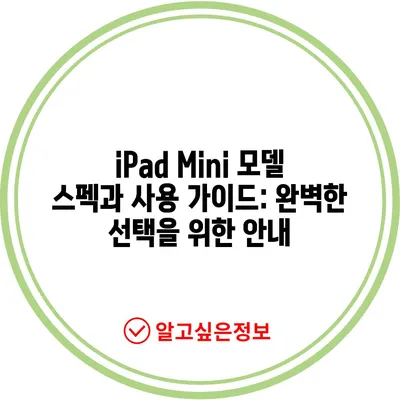 iPad Mini 모델 스펙과 사용 가이드: 완벽한 선택을 위한 안내