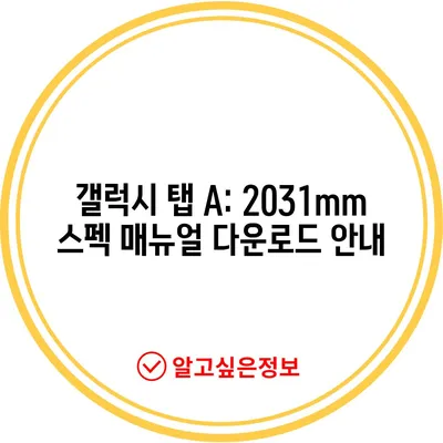 갤럭시 탭 A: 2031mm 스펙 매뉴얼 다운로드 안내