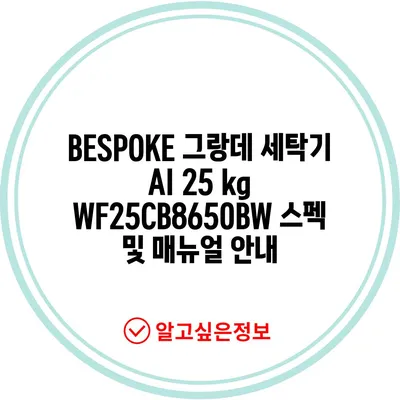 BESPOKE 그랑데 세탁기 AI 25 kg WF25CB8650BW 스펙 및 매뉴얼 안내