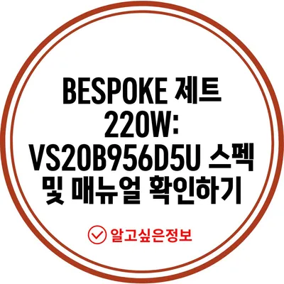 BESPOKE 제트 220W: VS20B956D5U 스펙 및 매뉴얼 확인하기