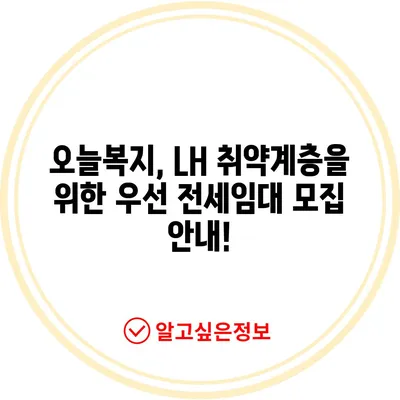 오늘복지, LH 취약계층을 위한 우선 전세임대 모집 안내!