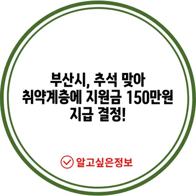 부산시, 추석 맞아 취약계층에 지원금 150만원 지급 결정!