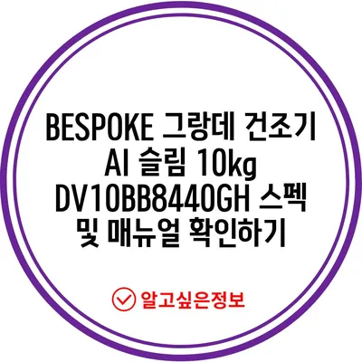 BESPOKE 그랑데 건조기 AI 슬림 10kg DV10BB8440GH 스펙 및 매뉴얼 확인하기