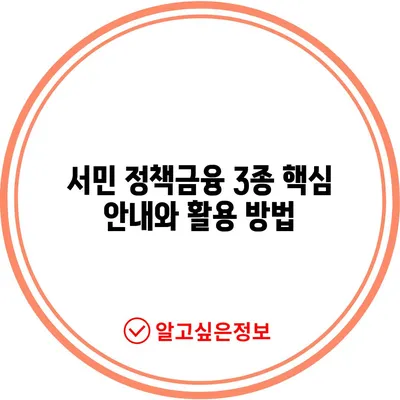 서민 정책금융 3종 핵심 안내와 활용 방법