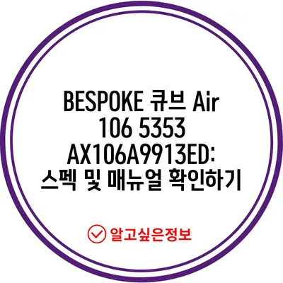 BESPOKE 큐브 Air 106 5353 AX106A9913ED: 스펙 및 매뉴얼 확인하기