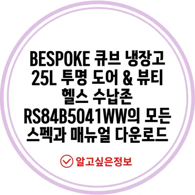 BESPOKE 큐브 냉장고 25 L투명 도어 뷰티 헬스 수납존 RS84B5041WW 소개 및 스펙매뉴얼 다운로드