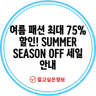 여름 패션 최대 75% 할인! SUMMER SEASON OFF 세일 안내