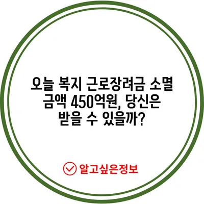 오늘 복지 근로장려금 소멸 금액 450억원, 당신은 받을 수 있을까?