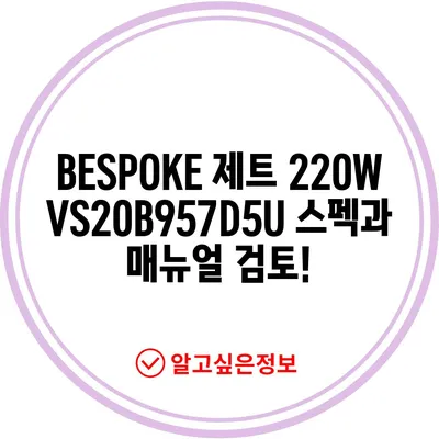 💡 BESPOKE 제트 220W와 VS20B956BUE의 차별점과 기능을 알아보세요. 💡