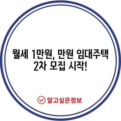 월세 1만원, 만원 임대주택 2차 모집 시작!