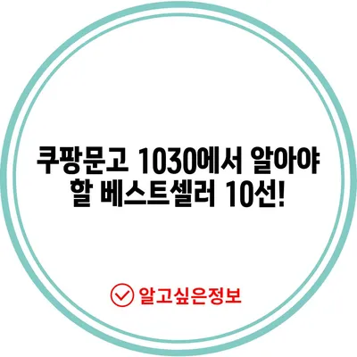 쿠팡문고 1030에서 알아야 할 베스트셀러 10선!