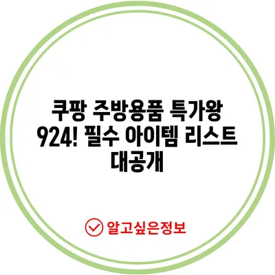 쿠팡 주방용품 특가왕 924! 필수 아이템 리스트 대공개