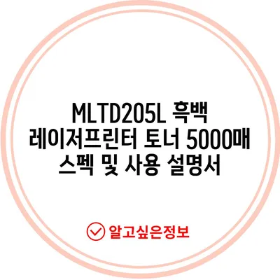 MLTD205L 흑백 레이저프린터 토너 5000매 스펙 및 사용 설명서
