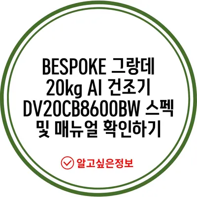 BESPOKE 그랑데 20kg AI 건조기 DV20CB8600BW 스펙 및 매뉴얼 확인하기
