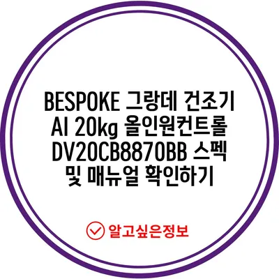 BESPOKE 그랑데 건조기 AI 20kg 올인원컨트롤 DV20CB8870BB 스펙 및 매뉴얼 확인하기