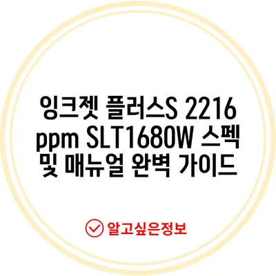 잉크젯 플러스S 2216 ppm SLT1680W 스펙 및 매뉴얼 완벽 가이드