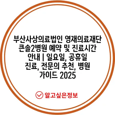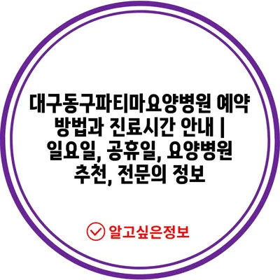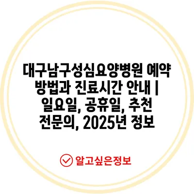 대구남구성심요양병원 예약 방법과 진료시간 안내 | 일요일, 공휴일, 추천 전문의, 2025년 정보