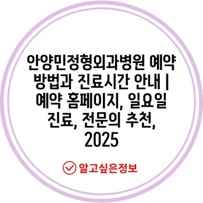 안양민정형외과병원 예약 방법과 진료시간 안내 | 예약 홈페이지, 일요일 진료, 전문의 추천, 2025