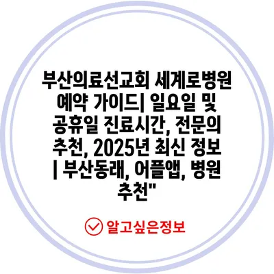 부산의료선교회 세계로병원 예약 가이드| 일요일 및 공휴일 진료시간, 전문의 추천, 2025년 최신 정보 | 부산동래, 어플앱, 병원 추천”
