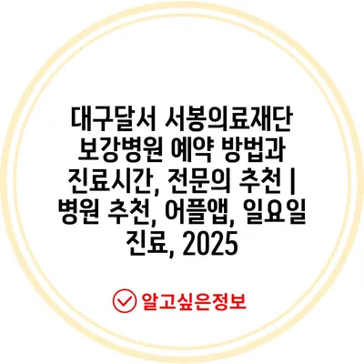 대구달서 서봉의료재단 보강병원 예약 방법과 진료시간, 전문의 추천 | 병원 추천, 어플앱, 일요일 진료, 2025