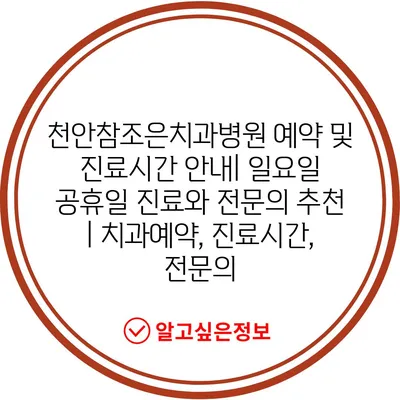 천안참조은치과병원 예약 및 진료시간 안내| 일요일 공휴일 진료와 전문의 추천 | 치과예약, 진료시간, 전문의