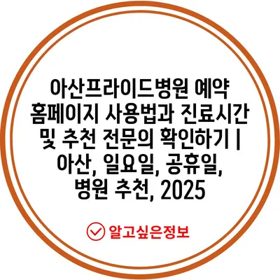 아산프라이드병원 예약 홈페이지 사용법과 진료시간 및 추천 전문의 확인하기 | 아산, 일요일, 공휴일, 병원 추천, 2025