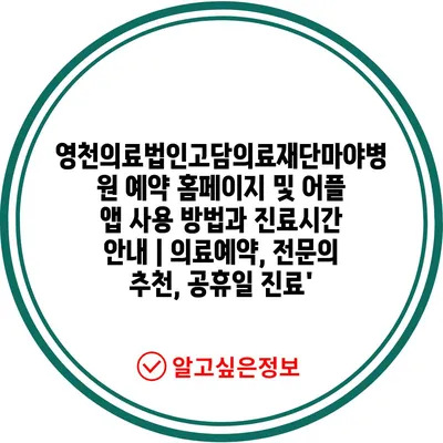 영천의료법인고담의료재단마야병원 예약 홈페이지 및 어플 앱 사용 방법과 진료시간 안내 | 의료예약, 전문의 추천, 공휴일 진료’