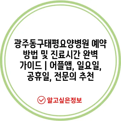 광주동구태평요양병원 예약 방법 및 진료시간 완벽 가이드 | 어플앱, 일요일, 공휴일, 전문의 추천