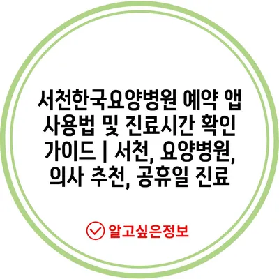 서천한국요양병원 예약 앱 사용법 및 진료시간 확인 가이드 | 서천, 요양병원, 의사 추천, 공휴일 진료