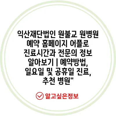 익산재단법인 원불교 원병원 예약 홈페이지 어플로 진료시간과 전문의 정보 알아보기 | 예약방법, 일요일 및 공휴일 진료, 추천 병원”