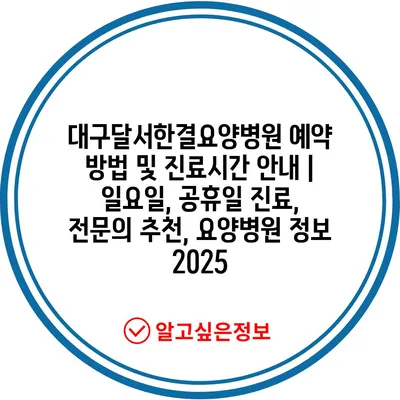 대구달서한결요양병원 예약 방법 및 진료시간 안내 | 일요일, 공휴일 진료, 전문의 추천, 요양병원 정보 2025